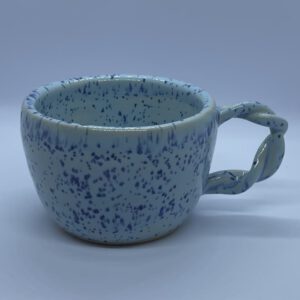 Koffie kopje blauw-wit gespikkeld met gedraaid oor